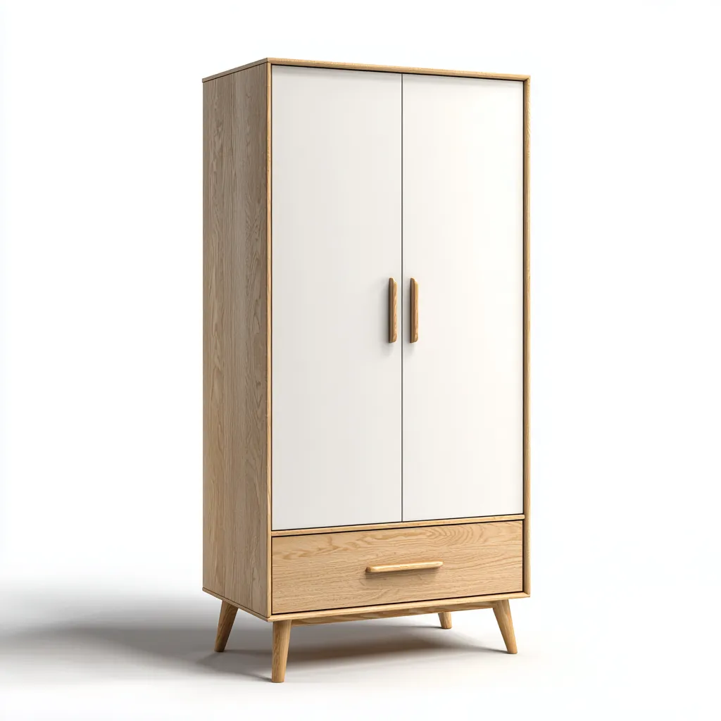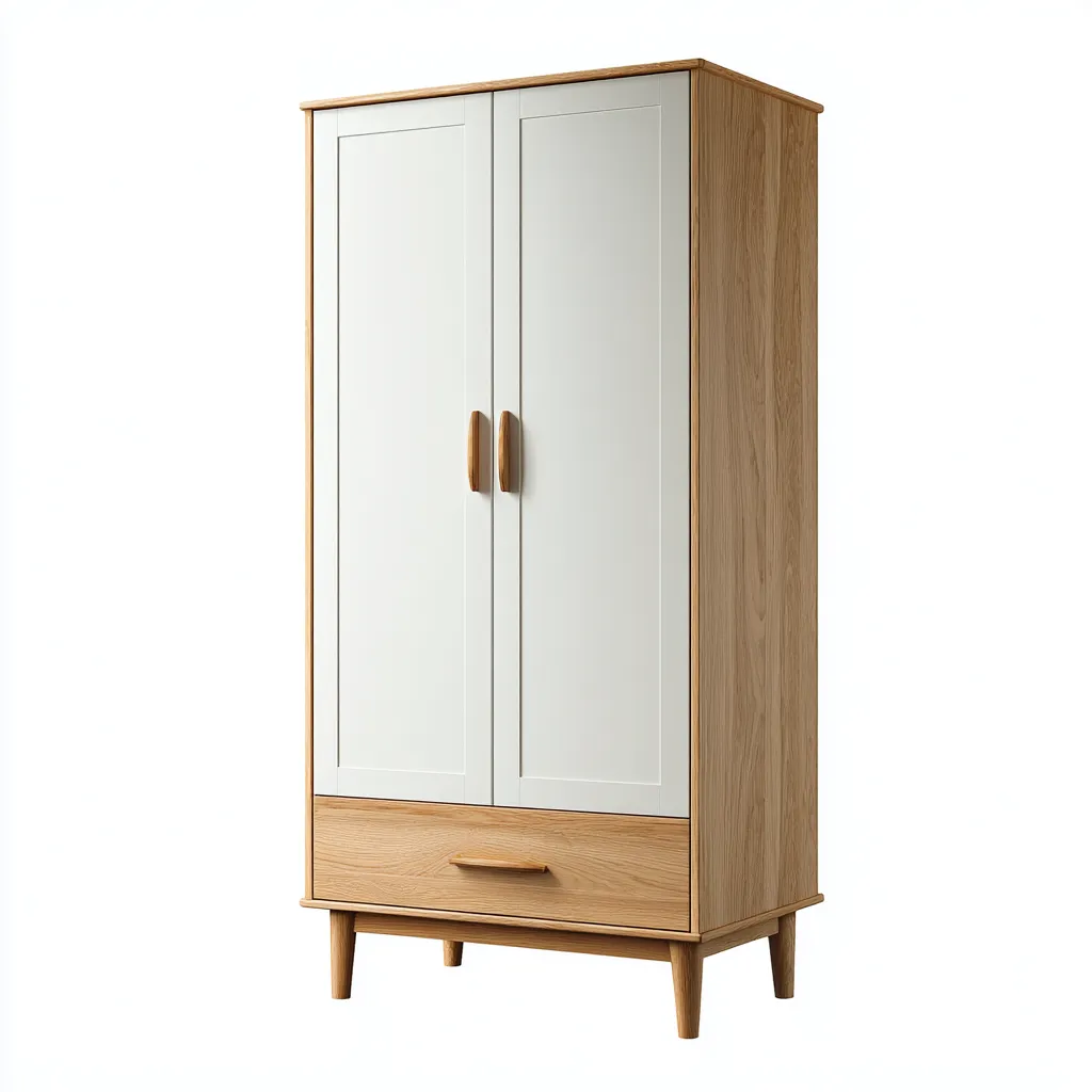 Armadio - Legno - 106x55x200 cm - Bianco-Rovere naturale - Stile nordico