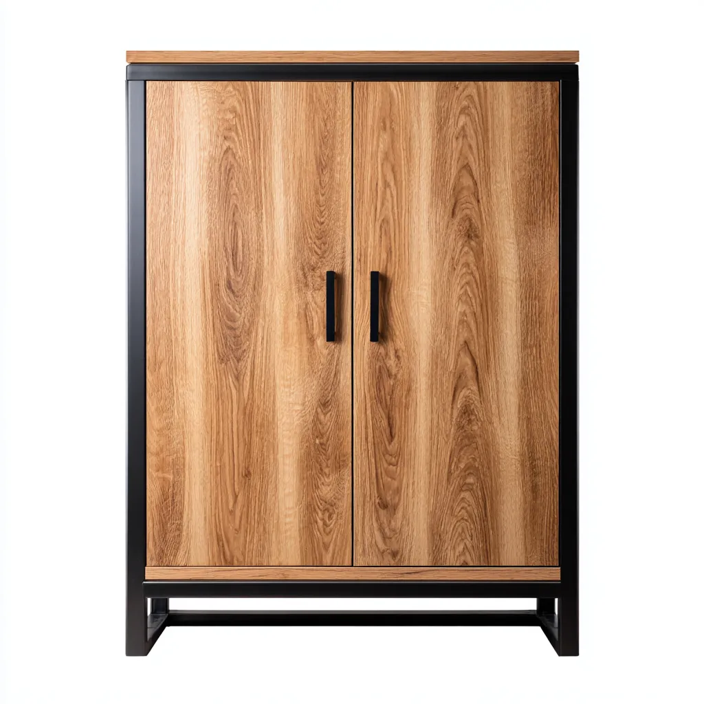 Armadio - Legno-Metallo - 112x56x190 cm - Rovere naturale-Nero - Stile industriale