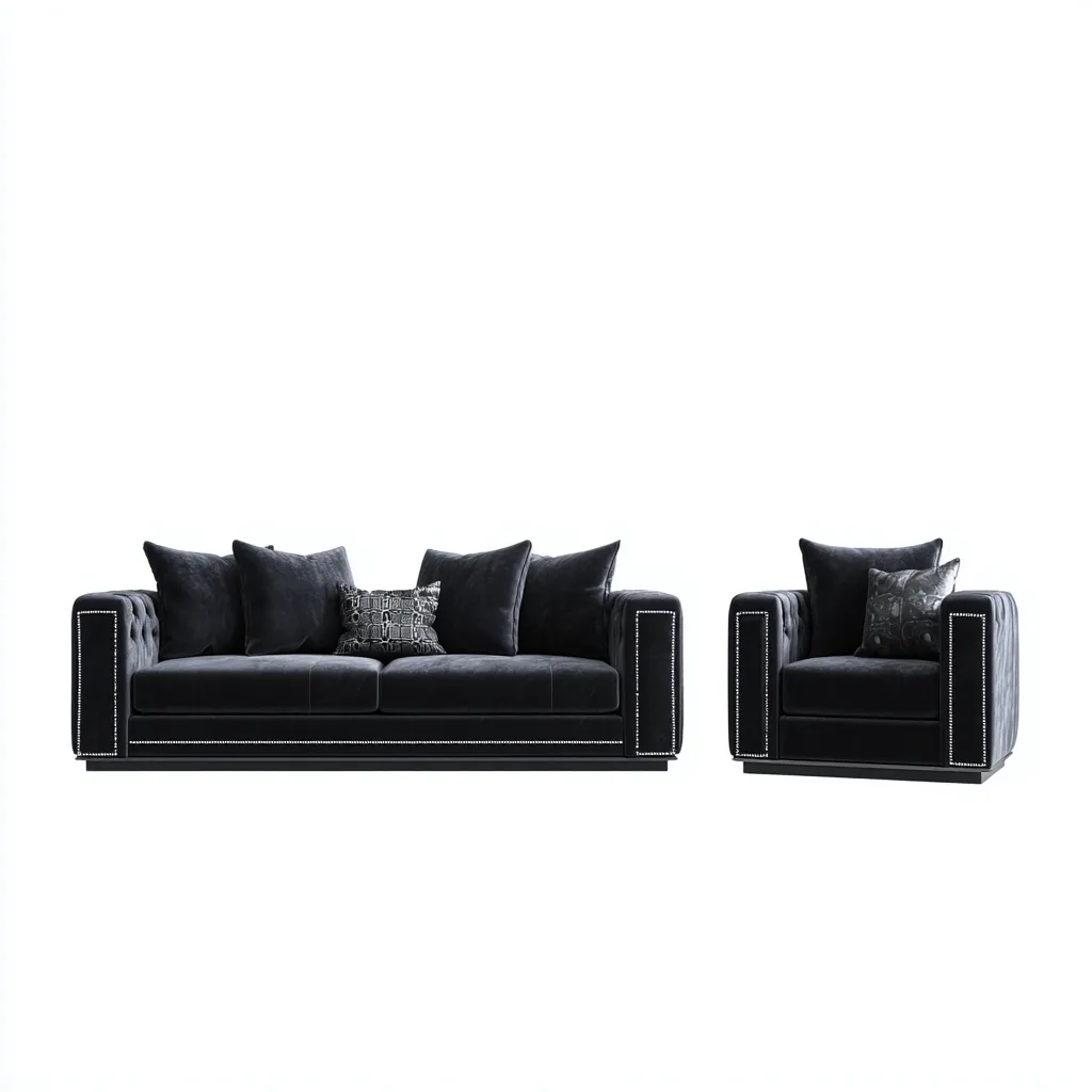Set divani-Velluto-222x96x78 cm-Nero-Stile moderno