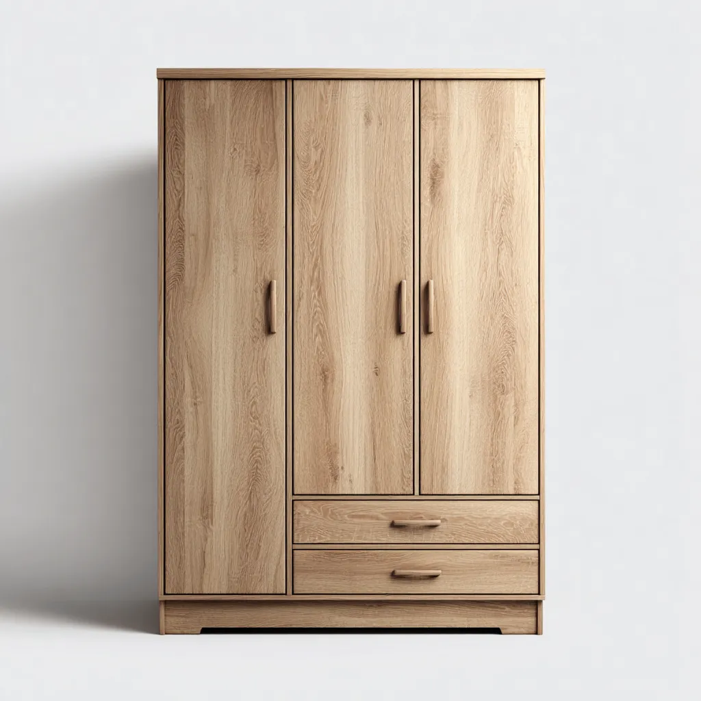 Armadio progettato per l'arredo della camera da letto, adatto a contesti abitativi moderni e luminosi. La finitura effetto rovere naturale valorizza l'ambiente e offre una soluzione pratica per l'organizzazione quotidiana di abbigliamento e tessili.