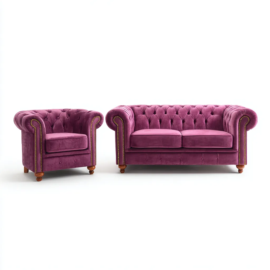 Set divani progettato per arredare il soggiorno con uno stile elegante e coordinato. La combinazione di divano e poltrona consente di creare un ambiente confortevole e funzionale per l uso quotidiano.